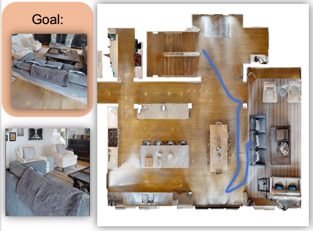 最终,融合了来自真实 RGB-D 扫描数据与虚拟仿真环境的导航轨迹,以下三段视频展示了模型在真实世界的能力。训练目标和数据采集